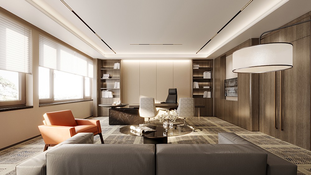 設計理念:本案設計注重空間透明度、輕盈感和自然采光,以金灰為主要色調,打造現(xiàn)代、簡約、工業(yè)風格的辦公空間。設計師巧妙利用玻璃、石膏燈、射燈等元素,增添光影效果,使空間在低調中追求高端品質。同時,設計師充分考慮員工的健康與空間的和諧,多功能會議室與方案匯報室的設計兼具個性與實用性,為辦公環(huán)境注入新鮮活力。