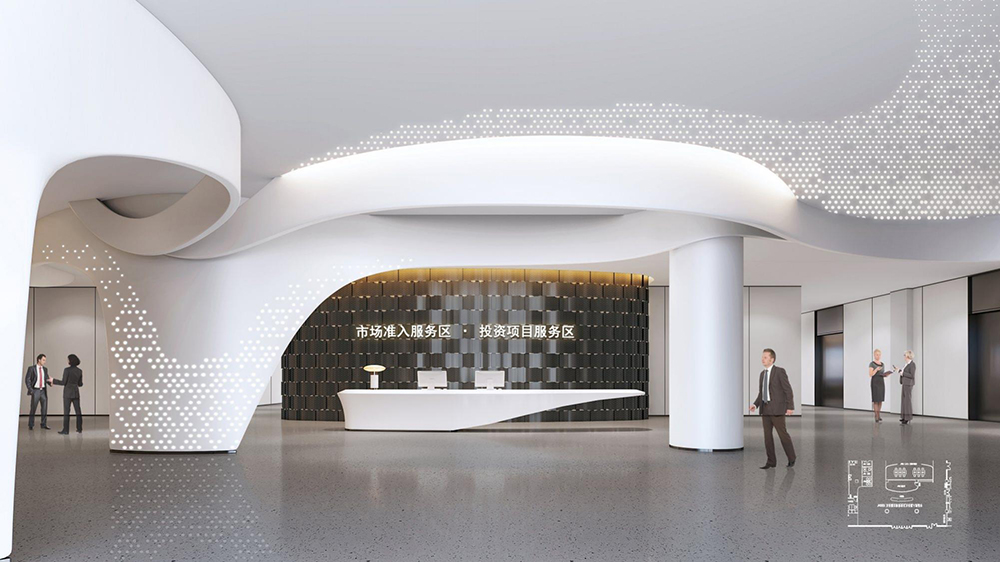 設(shè)計理念:本服務(wù)中心提供包括民生服務(wù)區(qū)、社會保障服務(wù)區(qū)、婚姻登記服務(wù)區(qū)、警務(wù)服務(wù)區(qū)、不動產(chǎn)服務(wù)區(qū)、公積金及水電服務(wù)區(qū)、辦稅服務(wù)區(qū)、公共資源交易中心、圖審中心、投資項目服務(wù)區(qū)、市場準(zhǔn)入服務(wù)區(qū)、政策服務(wù)一體展示體驗區(qū)等一站式服務(wù)。