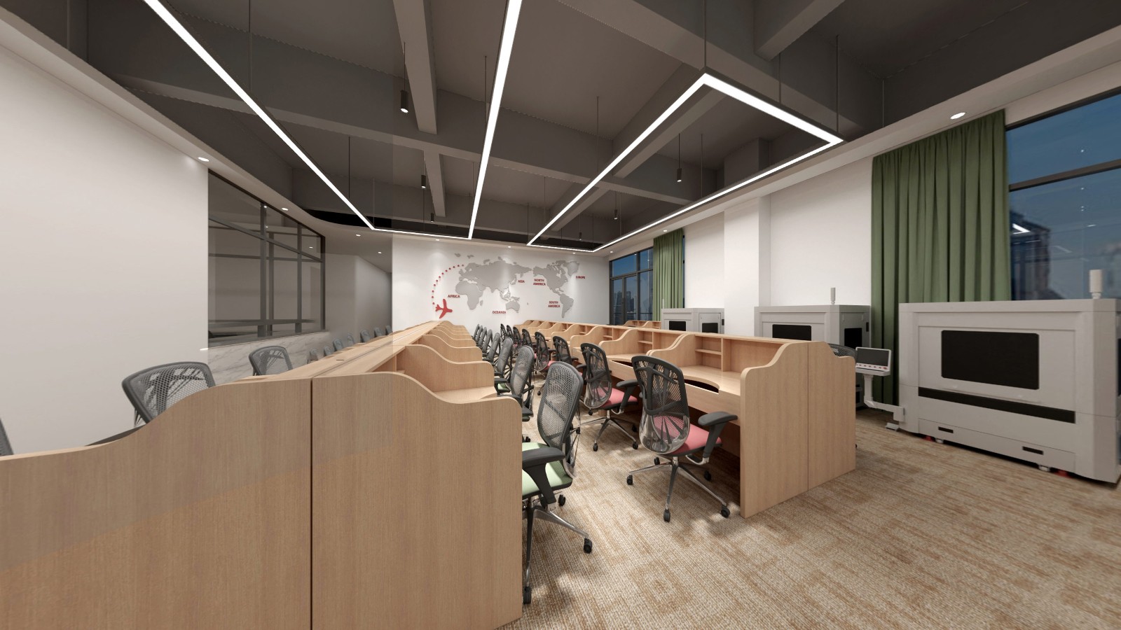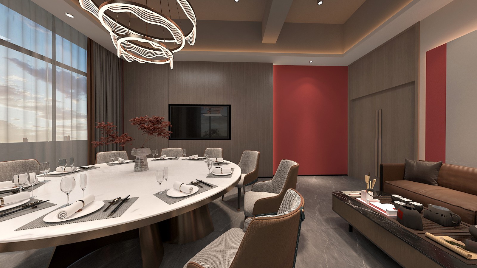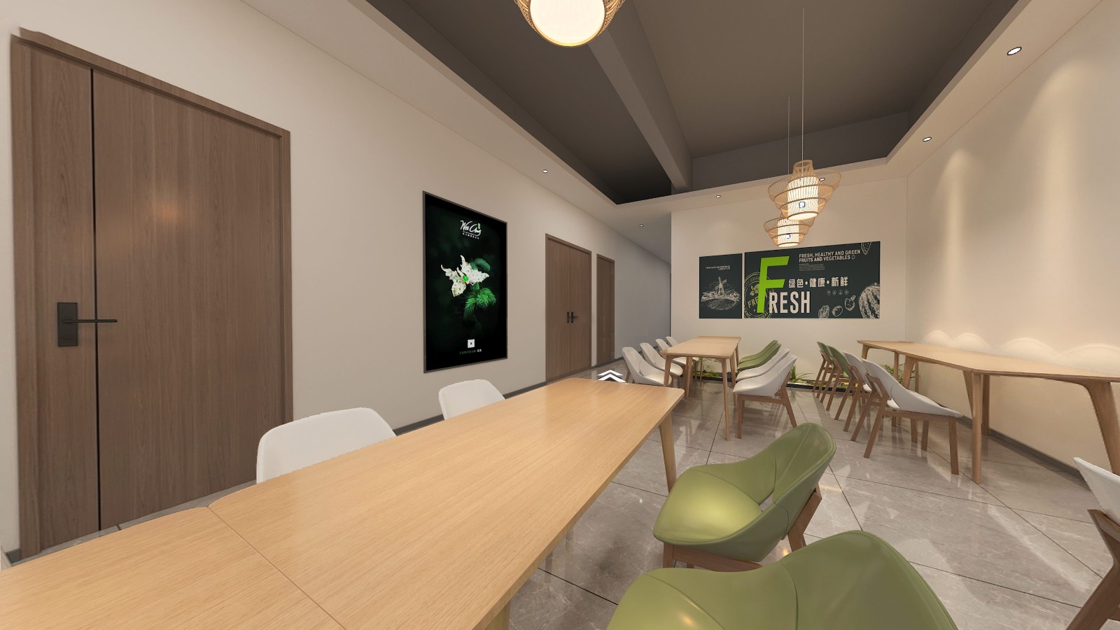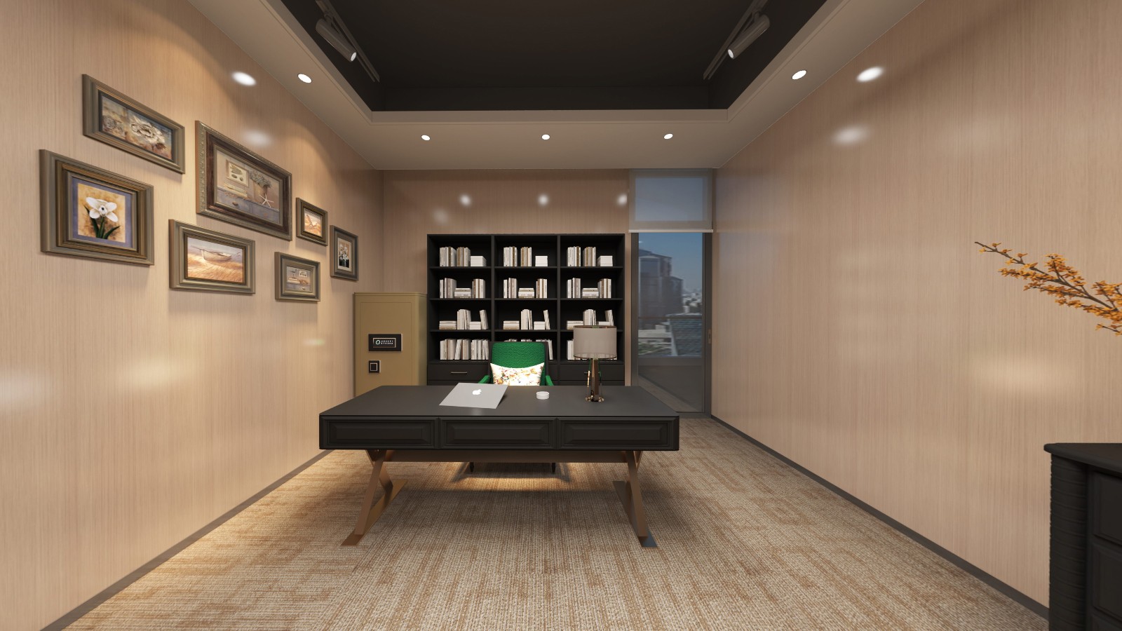 辦公區(qū)域延續(xù)采用了新中式的設計風格,簡化了繁雜的裝飾,加入了少量的幾何元素進行點綴,為古典文藝的辦公空間融入了商務元素,同時也滿足了現(xiàn)代辦公的功能性和審美需求,創(chuàng)造出一個既典雅又高效的工作環(huán)境。