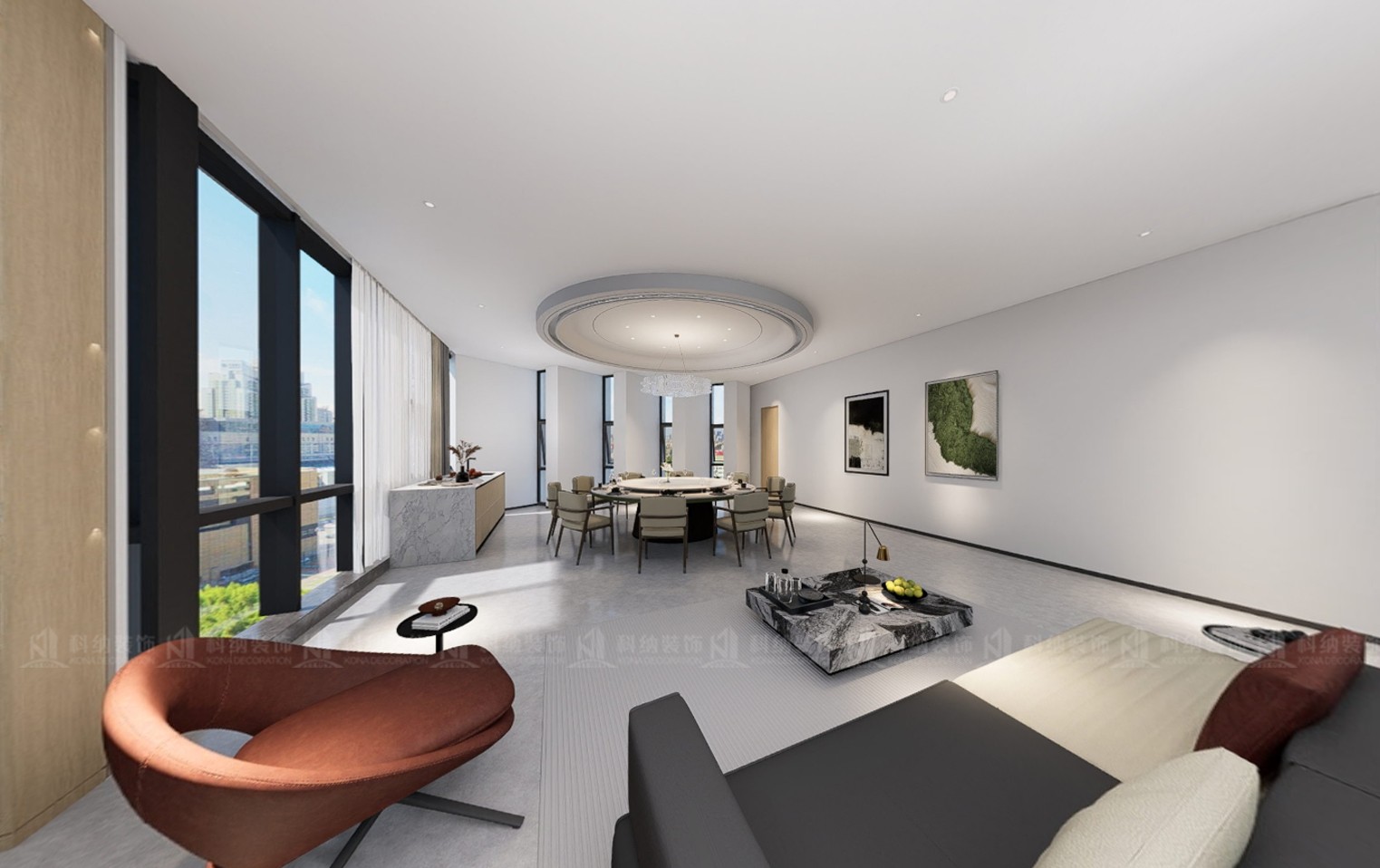 整體風(fēng)格以簡潔現(xiàn)代工業(yè)風(fēng)為基調(diào),巧妙地將中性色調(diào)與自然材料相結(jié)合,運(yùn)用原木色系的裝飾,為冷峻的工業(yè)風(fēng)增添了幾分柔和與溫暖,讓整個空間在明亮的氛圍中更顯寧靜,為員工營造出專業(yè)且舒適的工作環(huán)境。在空間規(guī)劃上,充分考慮了多種功能需求,精心布局了日常辦公區(qū)域、商務(wù)接待空間以及企業(yè)培訓(xùn)場地,滿足企業(yè)在不同場景下的使用要求。