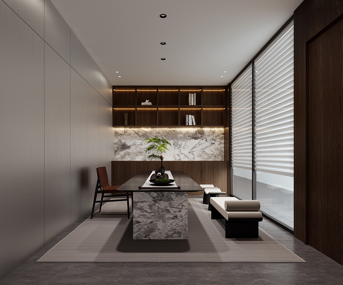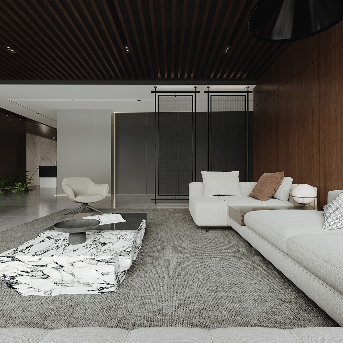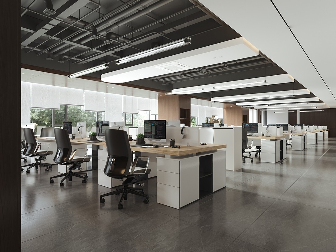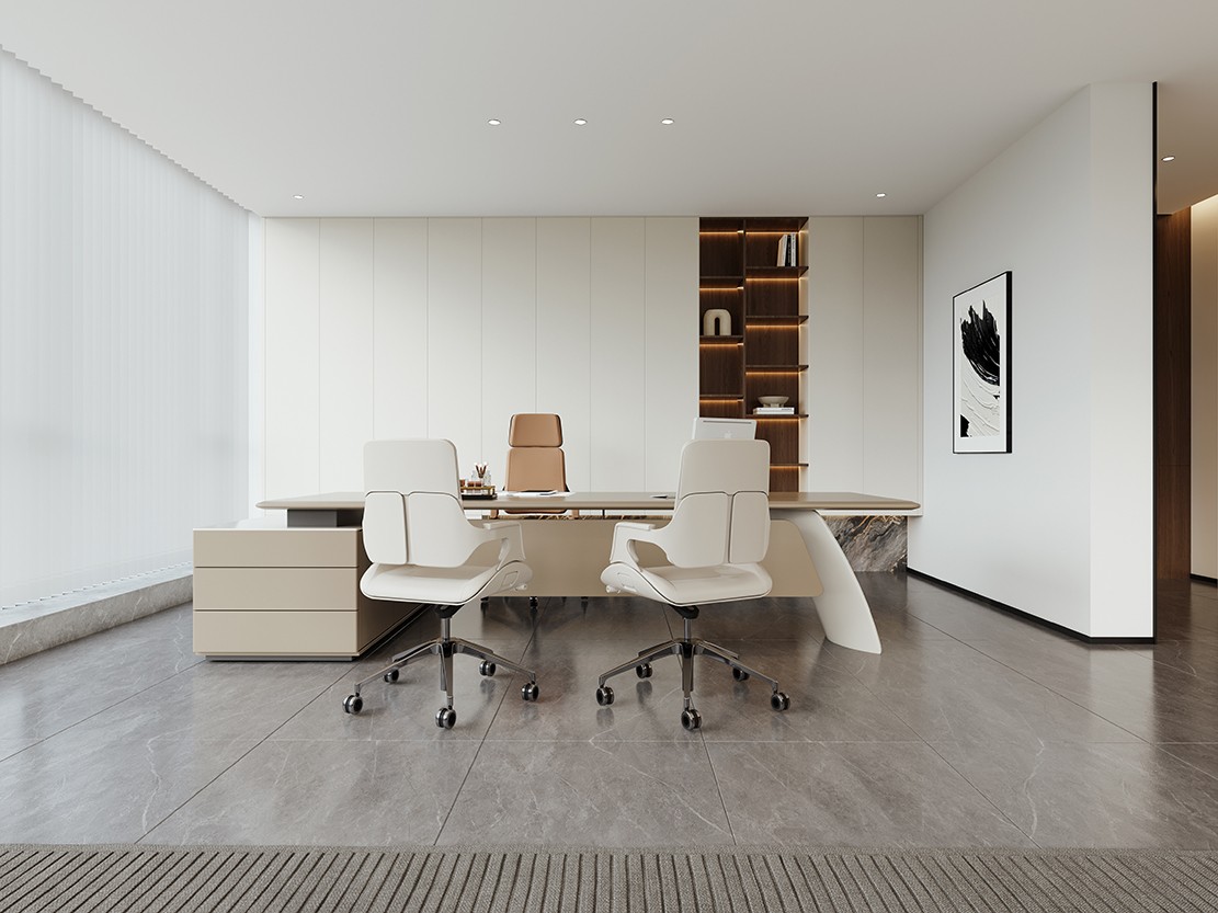 設(shè)計理念:整體空間以白色和灰色為主色調(diào),采用開放式的辦公布局,搭配金屬質(zhì)感的辦公家具和玻璃隔斷,營造出簡潔、現(xiàn)代的科技氛圍。在休息區(qū),設(shè)置了舒適的皮質(zhì)沙發(fā)和精致的茶幾,搭配暖黃色的燈光,為員工提供了一個放松身心的場所。同時,在辦公室的各個角落擺放了一些藝術(shù)雕塑和綠植,提升了空間的文化品質(zhì)和自然氣息。