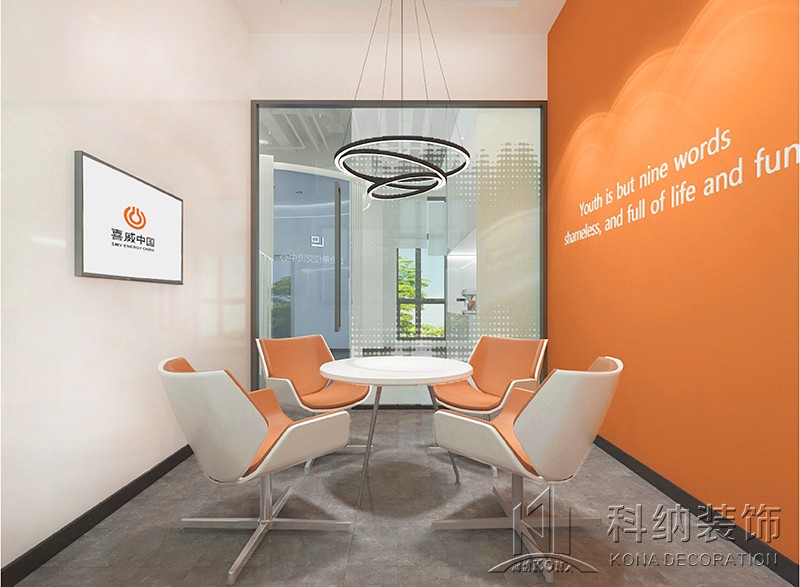 接待室色彩學(xué)的和諧主流便是 一動(dòng)一靜,一冷一暖。在簡(jiǎn)約的白空間里融入激情的橙,時(shí)尚美氤氳而生。