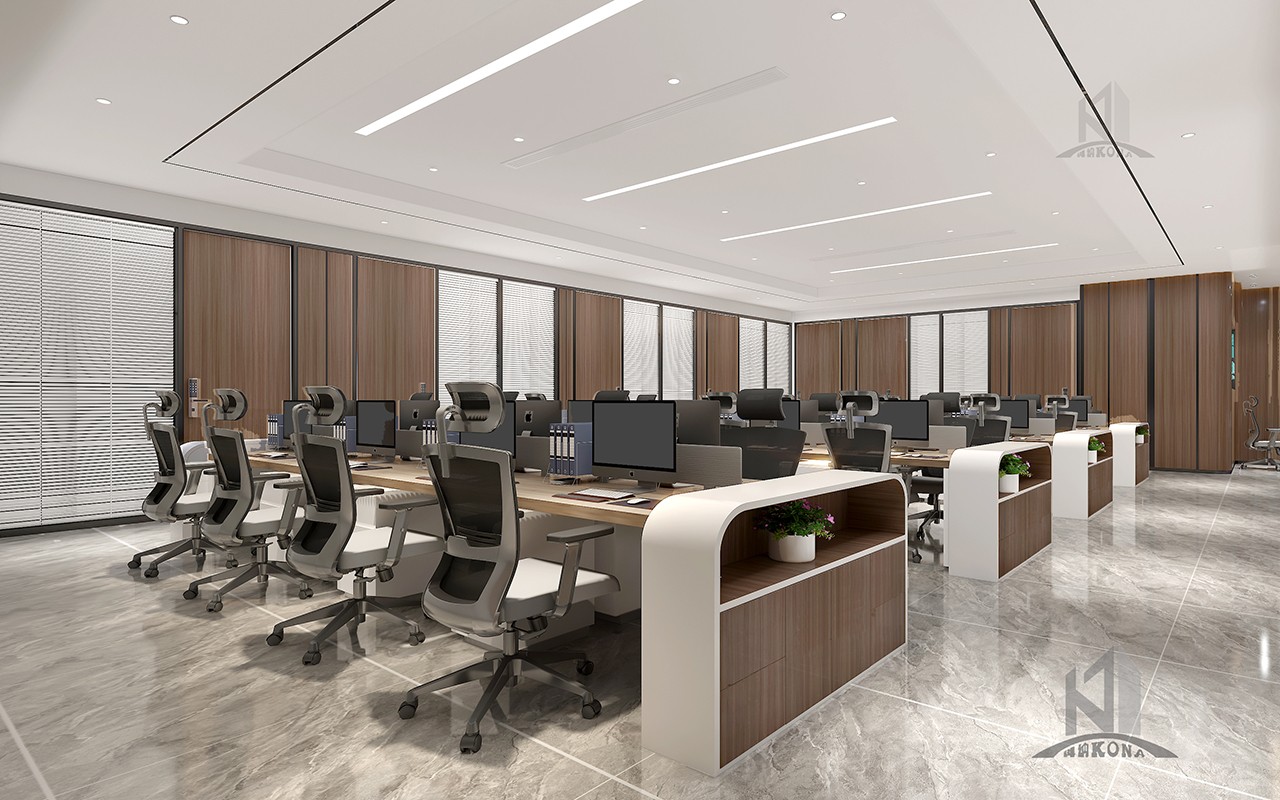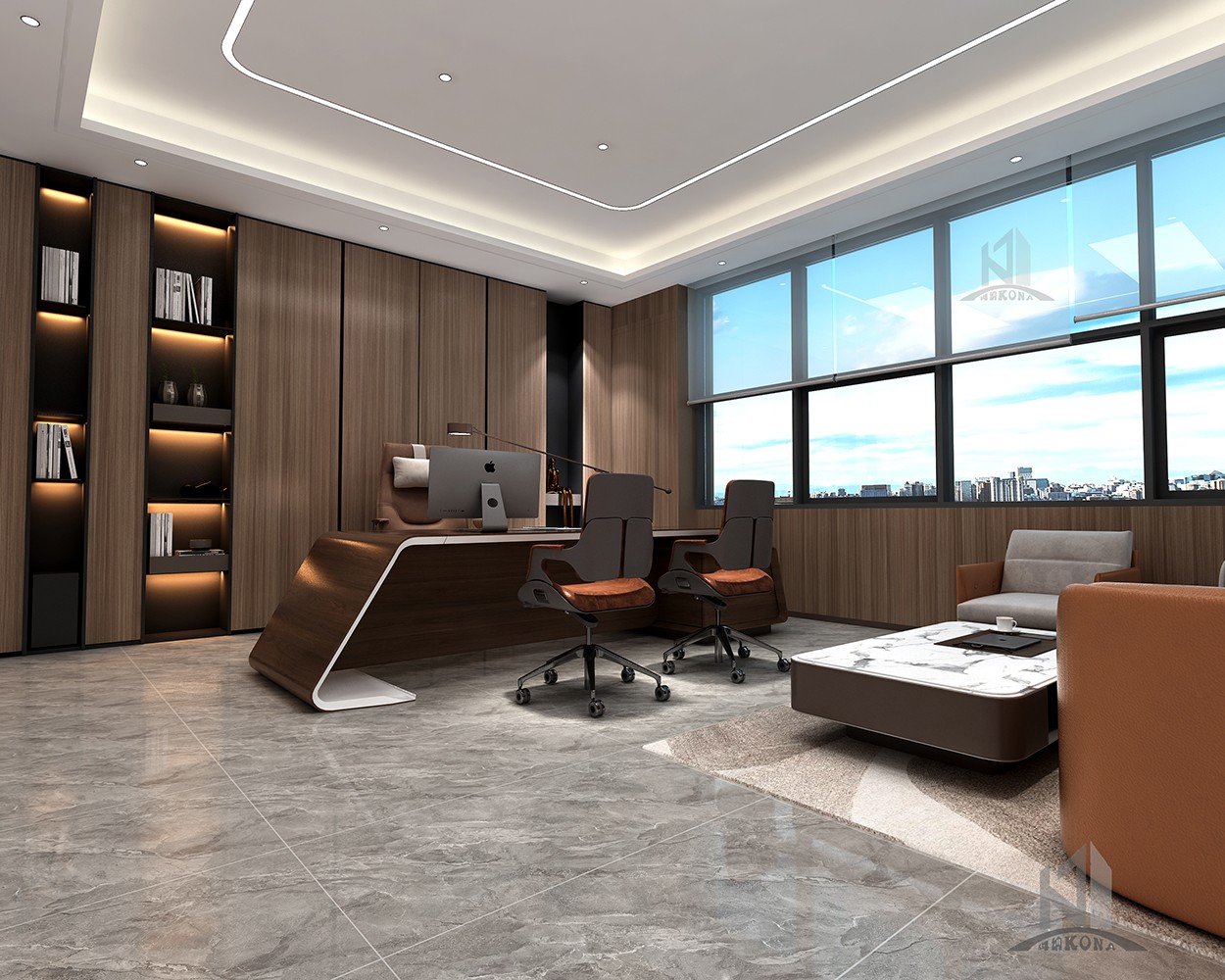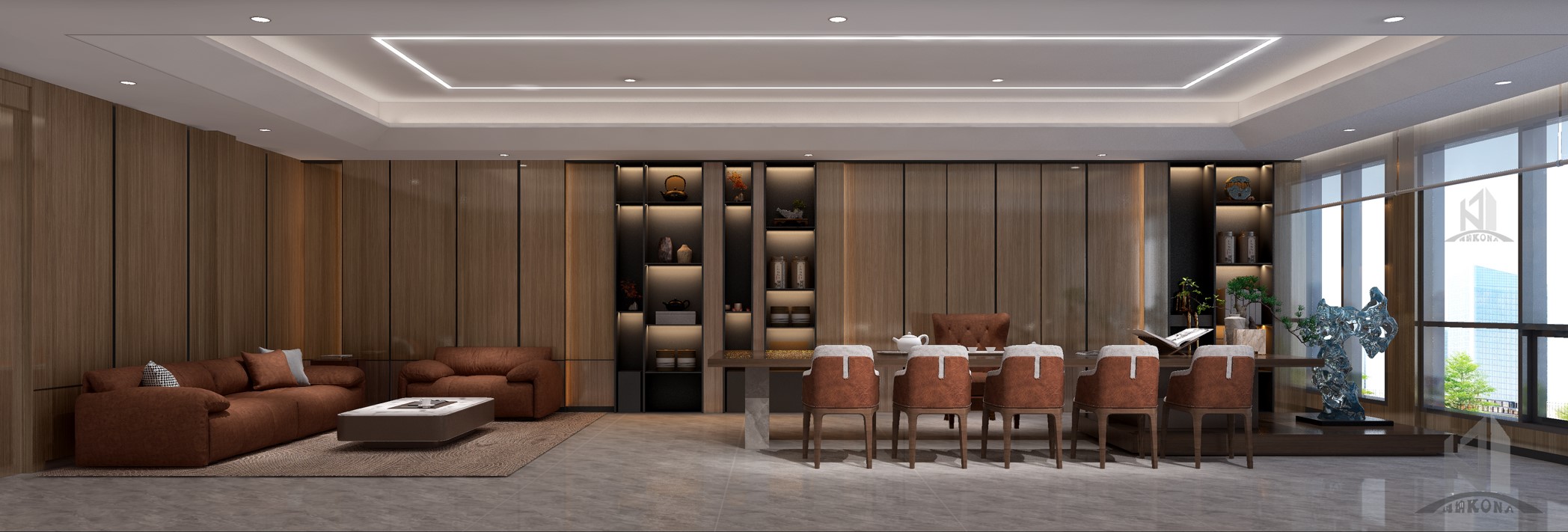 設(shè)計(jì)理念:傳統(tǒng)企業(yè)融合時(shí)代新審美辦公室設(shè)計(jì),大塊面的灰色系大理石穿插現(xiàn)代感的線條構(gòu)建了大家對于公司的初見印象,然而這種高級的現(xiàn)代感或許會顯得冰冷。但加上了深棕色的實(shí)木就又為公司的前臺注入了儒雅、沉淀與質(zhì)樸的大氣,無論時(shí)空如何轉(zhuǎn)換,刻在中國人骨子里的中式風(fēng)骨,千百年后依然在我們的設(shè)計(jì)語言中,獵獵作響。辦公室頂面用線條強(qiáng)調(diào)虛實(shí)及縱深,以實(shí)木構(gòu)件表達(dá)建筑語言,干凈簡潔的辦公區(qū)域加上了更加濃墨重彩的傳統(tǒng)中式風(fēng)格細(xì)節(jié),于寂靜無聲中展露中國歷史人文的厚重,還有更多現(xiàn)代與傳統(tǒng)融合的可能性。會議室呈簡潔大氣,端莊肅穆的風(fēng)格,彌漫著一點(diǎn)莊重的儀式感,深棕色、灰色、白色互相融合搭配,這個色系顯得純粹而有力量,在純凈的空間里,人們更容易獲得精神的沉淀,也更容易探尋到真誠的本質(zhì)。除此之外,利用巨大的落地窗,可以減輕空間的沉悶,中和會議室的氛圍。
