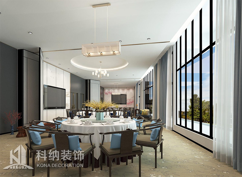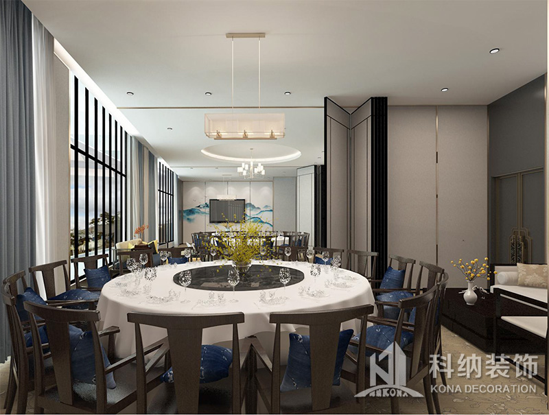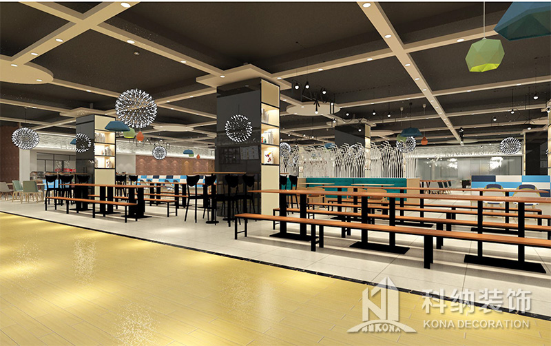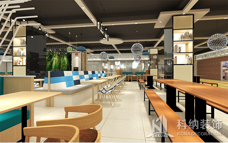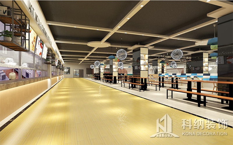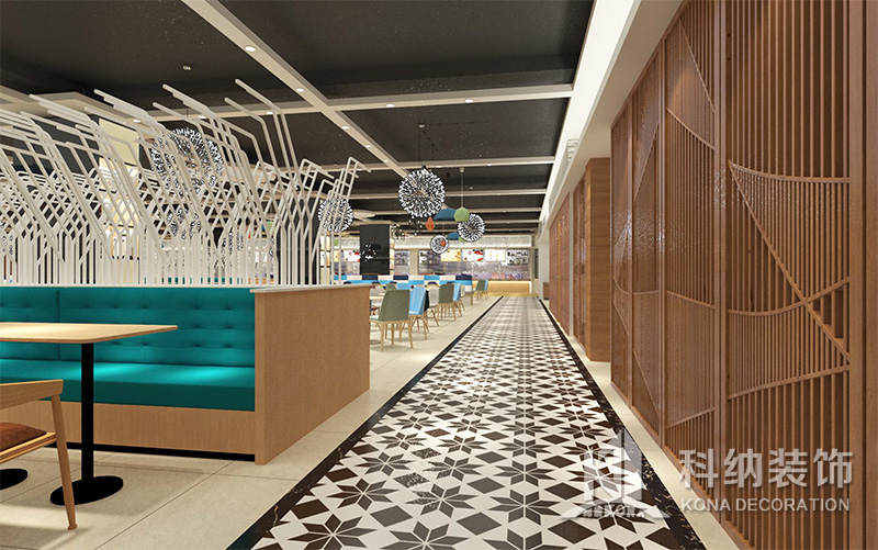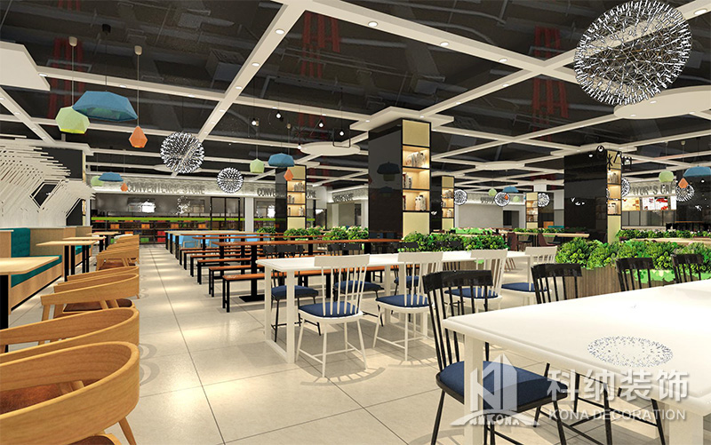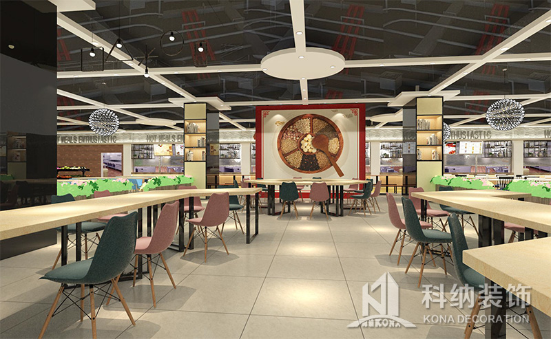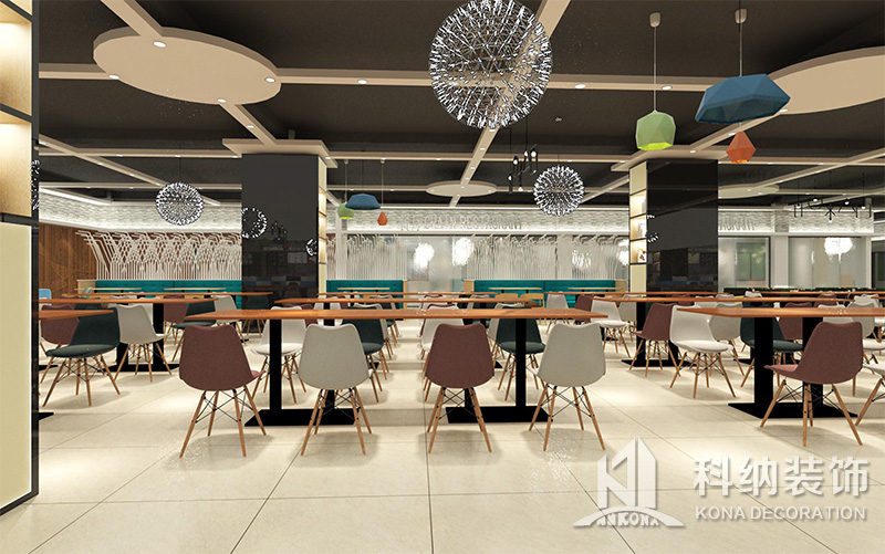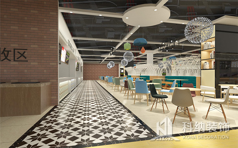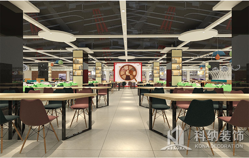 設(shè)計理念:該項目為嶺南職業(yè)學(xué)院清遠校區(qū)休閑餐廳,一樓可同時容納723人數(shù),二樓513人。設(shè)置有廚房、就餐區(qū)、品牌門店、多功能活動大廳、休閑區(qū)、自助餐區(qū)、接待包房等多個區(qū)域。設(shè)計師通過可移動屏風(fēng)隔斷墻實現(xiàn)包廂可變性,一個大包廂或2-3個小包廂之間的變換,可根據(jù)用餐人數(shù)決定空間的大小。餐廳不僅僅是用餐的功能,更是一個社交與體驗的場所,設(shè)計師在空間中設(shè)定了多種用餐場景,同時通過區(qū)域的劃分搭配不同座位的組合方式,從2人位到12人位,滿足了不同場景下的用餐需求。中心區(qū)域利用綠植劃分出來,使空間彼此分隔又能保持空間的通透。視線透過折線陣列的間隙,讓隔斷若實若虛。包房內(nèi)是傳統(tǒng)的中式宴請圓桌,和依舊灰色調(diào)為主的空間氛圍。墻面的裝飾畫,沒有濃墨重彩的痕跡,只是寥寥幾筆,將所有的刻意掩埋。