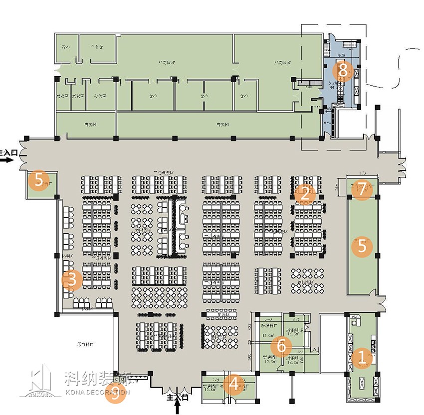 設(shè)計理念:設(shè)計師圍繞著“開放、包容、創(chuàng)新”的設(shè)計思路展開,整體風(fēng)格簡約穩(wěn)重、優(yōu)雅大方、東西方文化在這里相互交集融合、共生。整體格局設(shè)計沿用東方的古典美學(xué),用現(xiàn)代的裝飾語言營造出一個開放,包容的精神空間。設(shè)計師對于細(xì)節(jié)的考究更是細(xì)致入微,強調(diào)東方韻味與空間的感受,線條的運用更是畫龍點睛,形式上的變化細(xì)膩自然,材料上木材與石材的相互襯托,以及空間巧妙的留白,引人入勝。整體以暖色調(diào)為主色的餐飲空間,打造“多樣化”空間。