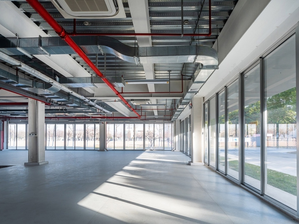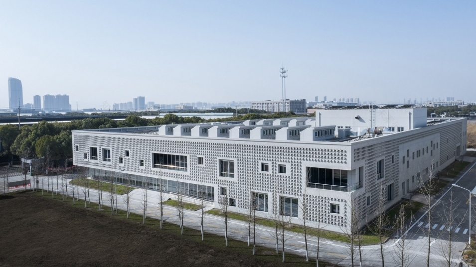 設計理念:本項目位于江蘇省昆山市,是和椿科技(昆山)有限公司投資于昆山花橋的二期廠房建設項目,根據(jù)和椿產品引入自然光與風、和遮陽的特性,采用當?shù)刈罱?jīng)濟的材料——混凝土空心磚,借鑒磚墻砌筑的傳統(tǒng)工藝,并根據(jù)內部各空間不同的采光通風需求,將空心磚進行組織排列形成凹凸鏤空、肌理豐富的建筑表皮。讓廠房建筑本身就能展示企業(yè)綠色理念,科技與生態(tài)的融合。