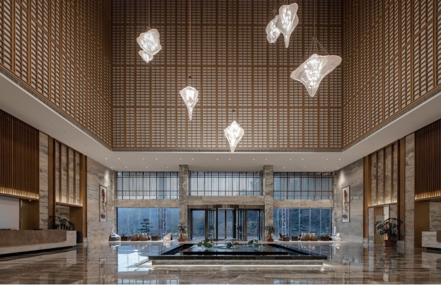 設(shè)計(jì)理念:大別山虛谷溫泉度假區(qū),位于六安茶谷九十里山水畫廊。敦兮其若樸,曠兮其若谷,大別山虛谷溫泉采用國際視野、獨(dú)特構(gòu)想,規(guī)劃打造一方青山碧水、宜居宜旅的現(xiàn)代化溫泉運(yùn)動(dòng)休閑度假村落——“一片森林、一汪湖水、一池溫泉、一幅畫卷?!痹O(shè)計(jì)主題來源于大別山及革命精神,傳承紅色基因,取此為點(diǎn)綴色調(diào)。山,沉穩(wěn)、挺拔、高聳,秉承自然、古樸之意,東方美學(xué)與自然設(shè)計(jì)理念相結(jié)合。