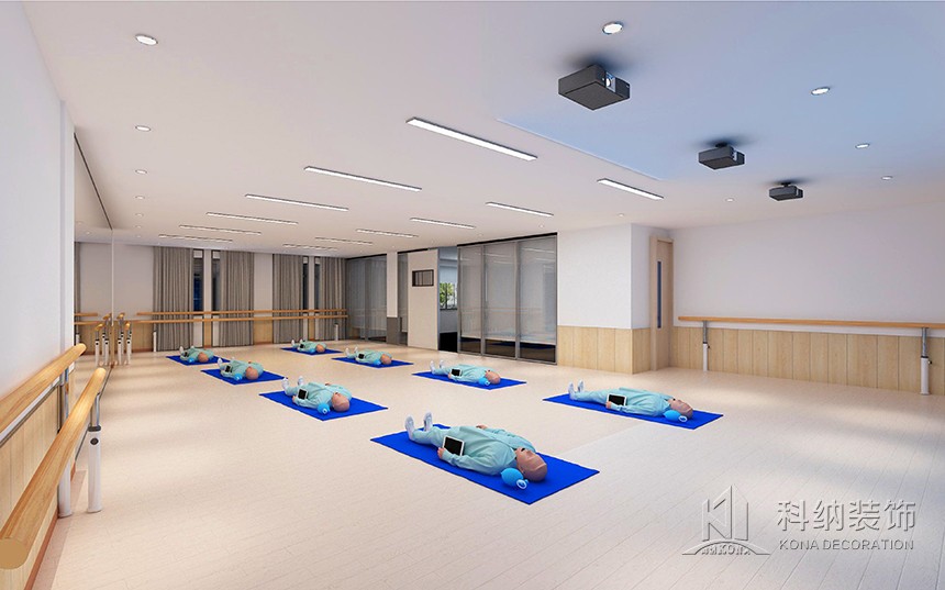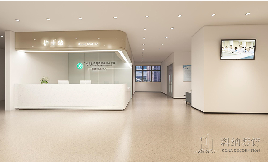 設(shè)計理念:醫(yī)護(hù)專業(yè)是培養(yǎng)適應(yīng)臨床第一線需要的高級醫(yī)護(hù)人才,不僅要有必需夠用的醫(yī)學(xué)理論知識,還要要有很強(qiáng)的動手操作能力和分析解決臨床操作的醫(yī)療技術(shù)問題的能力。因此醫(yī)護(hù)專業(yè)的教學(xué),必須加強(qiáng)對學(xué)生的實踐性教學(xué),強(qiáng)化學(xué)生動手操作能力的培養(yǎng),實訓(xùn)中心作為醫(yī)學(xué)院重要教學(xué)場所其設(shè)計直接關(guān)系著今后的教學(xué)。這次設(shè)計項目是食品藥品職業(yè)技術(shù)學(xué)院護(hù)理實訓(xùn)中心的室內(nèi)設(shè)計。該實訓(xùn)中心設(shè)有多媒體教室、護(hù)理教學(xué)實訓(xùn)中心、模擬手術(shù)室、模擬重癥室、模擬病房、婦產(chǎn)科技能訓(xùn)練室等場所的設(shè)計。