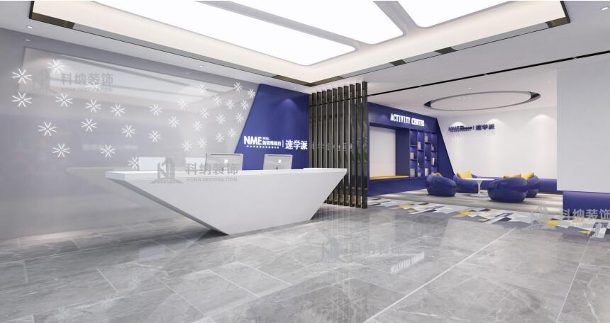 設(shè)計(jì)理念:此裝修設(shè)計(jì)項(xiàng)目是新思維教育集團(tuán)廣州培訓(xùn)中心,新思維是一家致力于青少年腦力開發(fā)和推廣的專業(yè)教育培訓(xùn)機(jī)構(gòu)。是國內(nèi)專業(yè)、權(quán)威的記憶培訓(xùn)機(jī)構(gòu),被譽(yù)為“中國全腦教育第一品牌”。此案例設(shè)計(jì)師根據(jù)與客戶溝通了解把培訓(xùn)中心劃分為教室、辦公區(qū)、咨詢室、接待區(qū)以及活動(dòng)中心幾大板塊。以深藍(lán)色和白色為主色調(diào),打造一個(gè)簡潔穩(wěn)重的形象,明亮輕快搭配傳播充滿活力的教學(xué)氛圍,明確標(biāo)識教學(xué)理念,局部用公司LOGO去展示整個(gè)企業(yè)的品牌,做到獨(dú)一與唯一。通過嚴(yán)謹(jǐn)?shù)陌盐湛臻g的尺度和情感氛圍,讓孩子能夠在安靜舒適的情緒環(huán)境下進(jìn)行學(xué)習(xí)。