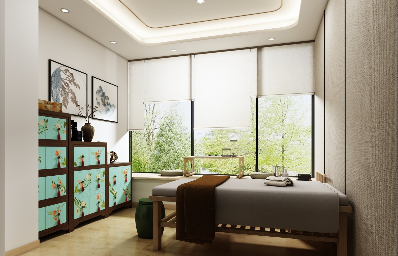 設(shè)計(jì)理念:以原木色和傳統(tǒng)建筑材料營(yíng)造出溫馨、舒適、親切且獨(dú)特的療愈空間,彰顯中國(guó)傳統(tǒng)醫(yī)學(xué)文化意境。